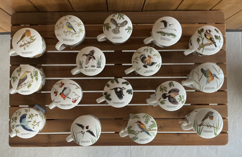Kubki są spakowane w eleganckie, fabryczne opakowania z opisem kolekcji i dopasowanymi grafikami, co czyni zestaw doskonałym prezentem dla miłośnika natury, ornitologii lub wyjątkowego wzornictwa.
