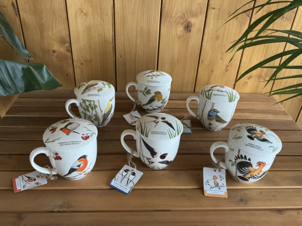 Zestaw 6 Kubków z zaparzaczami 380 ml z Kolekcji „Ptaki Polski” by Agata Hajdecka - Porcelana Bone China