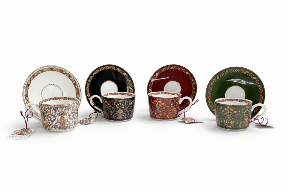 Ekskluzywny Zestaw Czterech Filiżanek ze Spodkami Stechcol Floral - Kolekcja Orientu